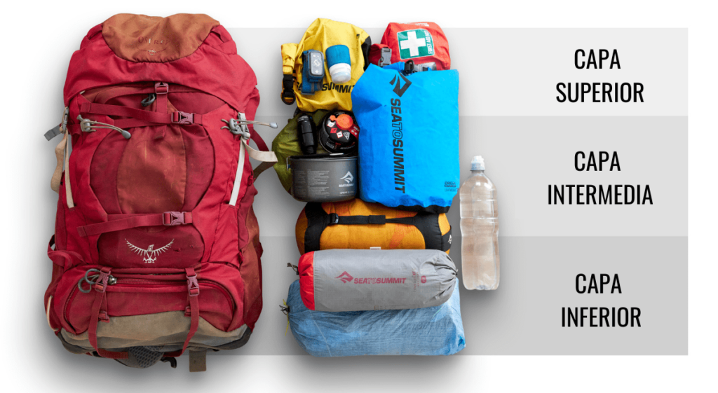 - Objetos pesados: Colócalos cerca de la espalda, en la parte media de la mochila.